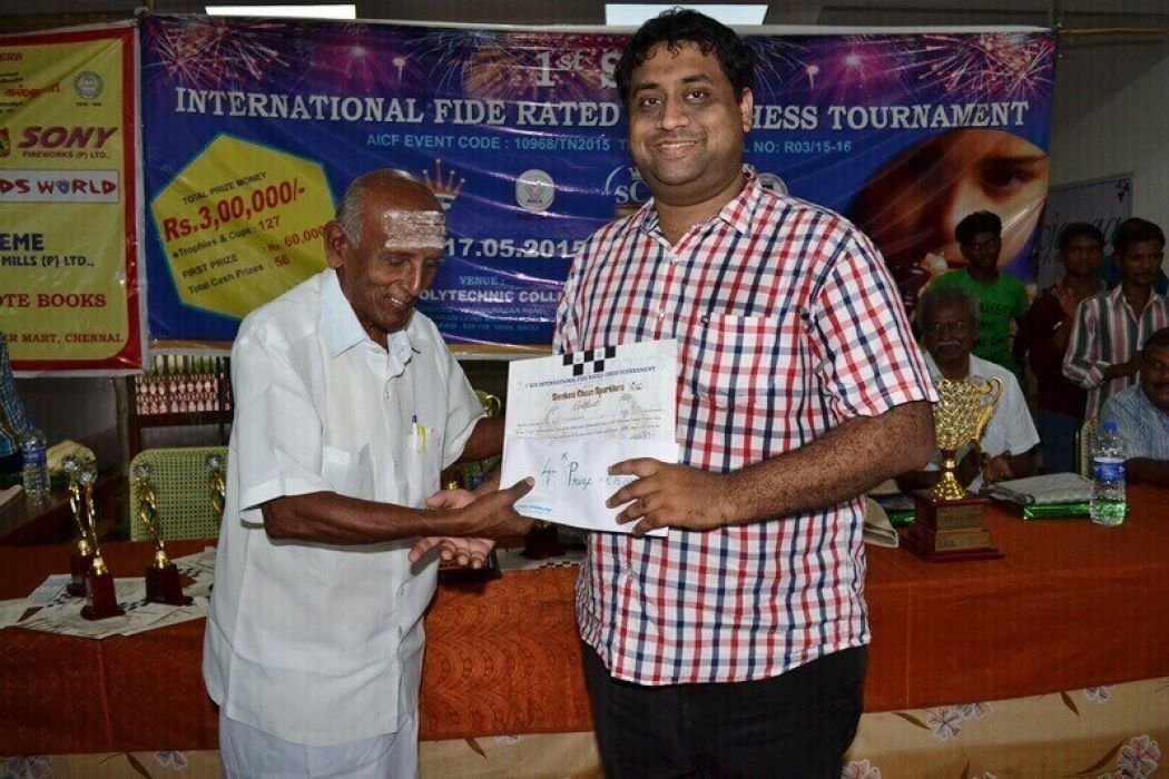 2015 1st SCS Rating GM Deepan Chakravarthy with trophy