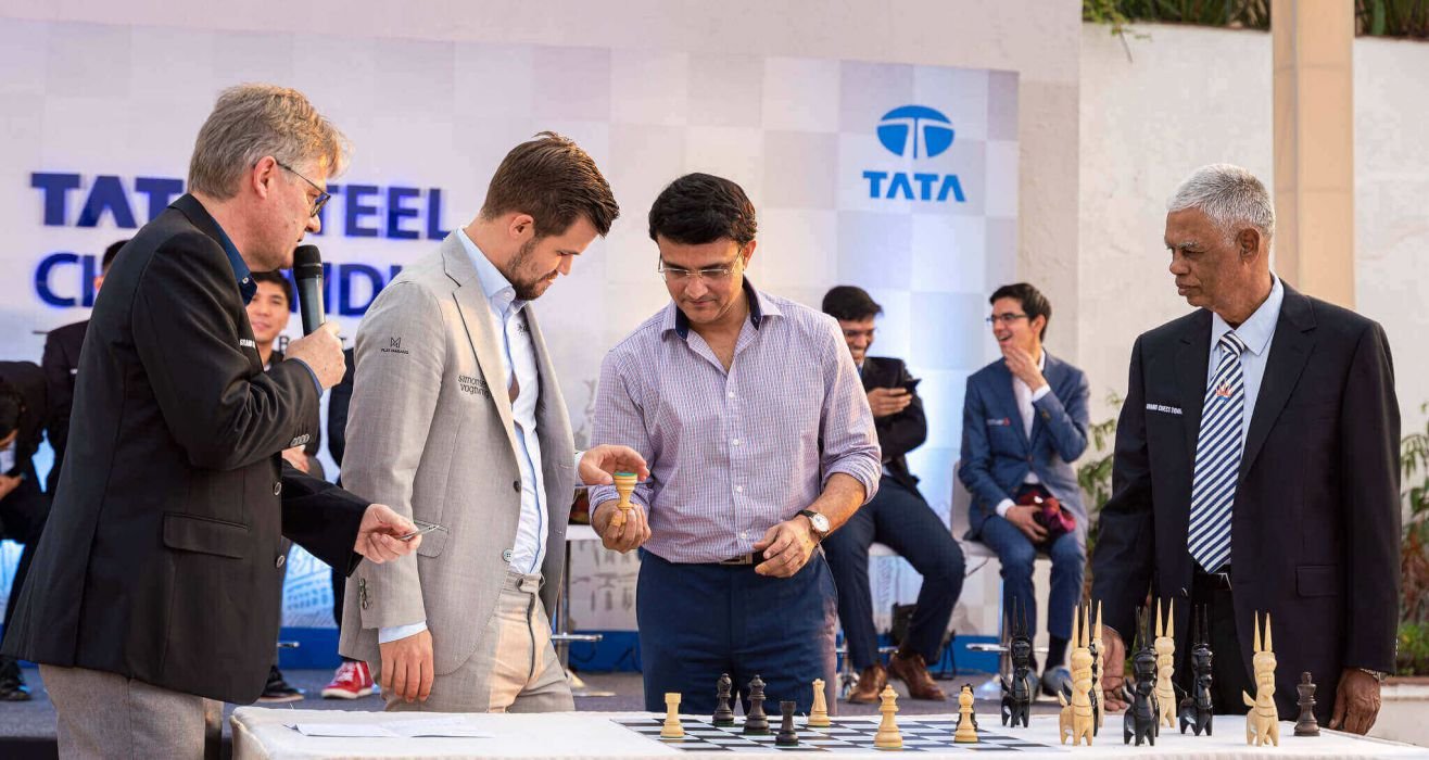 IA Anantharam with world champion Magnus Carlsen and BCCI president and former Indian cricket captain Sourav Ganguley