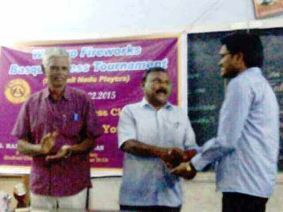 2015 1st SCS GM RR Laxman receives prize from TD Rajendran