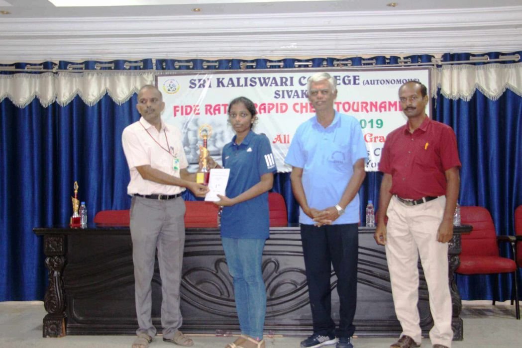 2019 Sivakasi Rapid WGM R Vaishali receives the champions trophy